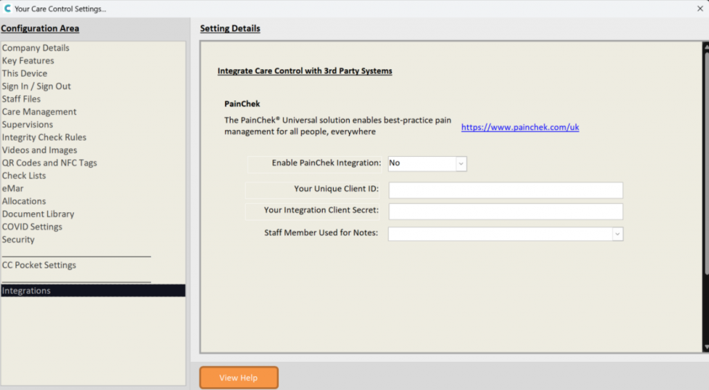 Staff Member Used for Notes – This is the Staff Member who will own the notes that come from PainChek, if you would like a central staff account for PainChek you could create a staff member for PainChek!