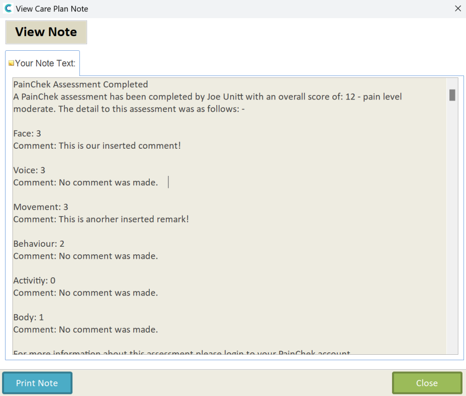 Once an assessment has been completed it’ll come through on Care Control as a note.