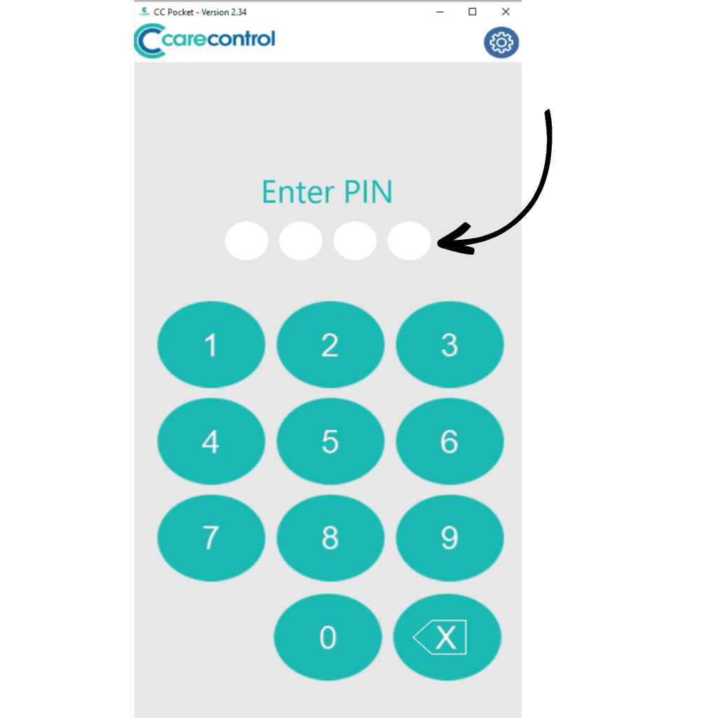 You will be presented with the PIN screen. Here you can enter your personal PIN provided to you when your staff profile was created on Care Control. This is the same PIN used to sign into the other Care Control software.