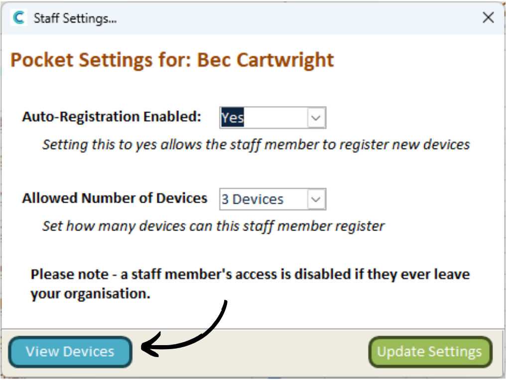 This guide will cover how to remove a registered staff Pocket device via Care Control Windows.