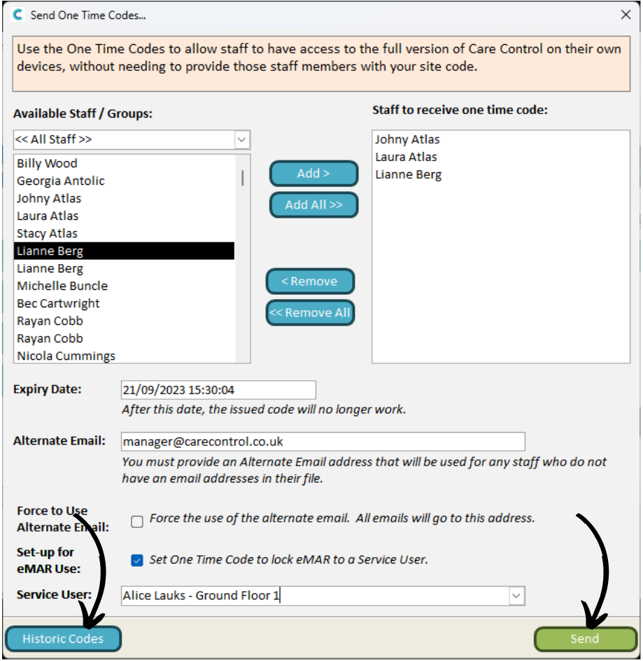 This guide will cover how to set up One Time Codes for your staff members via Care Control Windows. OTC’s allow staff members to register Care Control on their personal devices, without the need to give out the SITE code to them. These are particularly useful in Dom-Care or Supported Living care environments where staff are more likely to work from their personal devices.