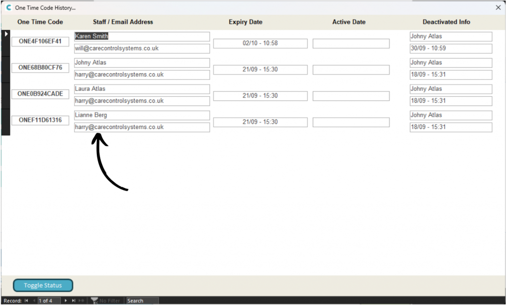 OTC’s will then be sent to the selected staff members, or to the alternative email address.