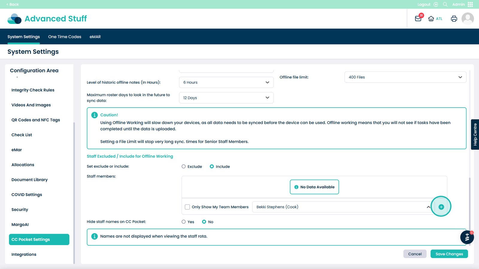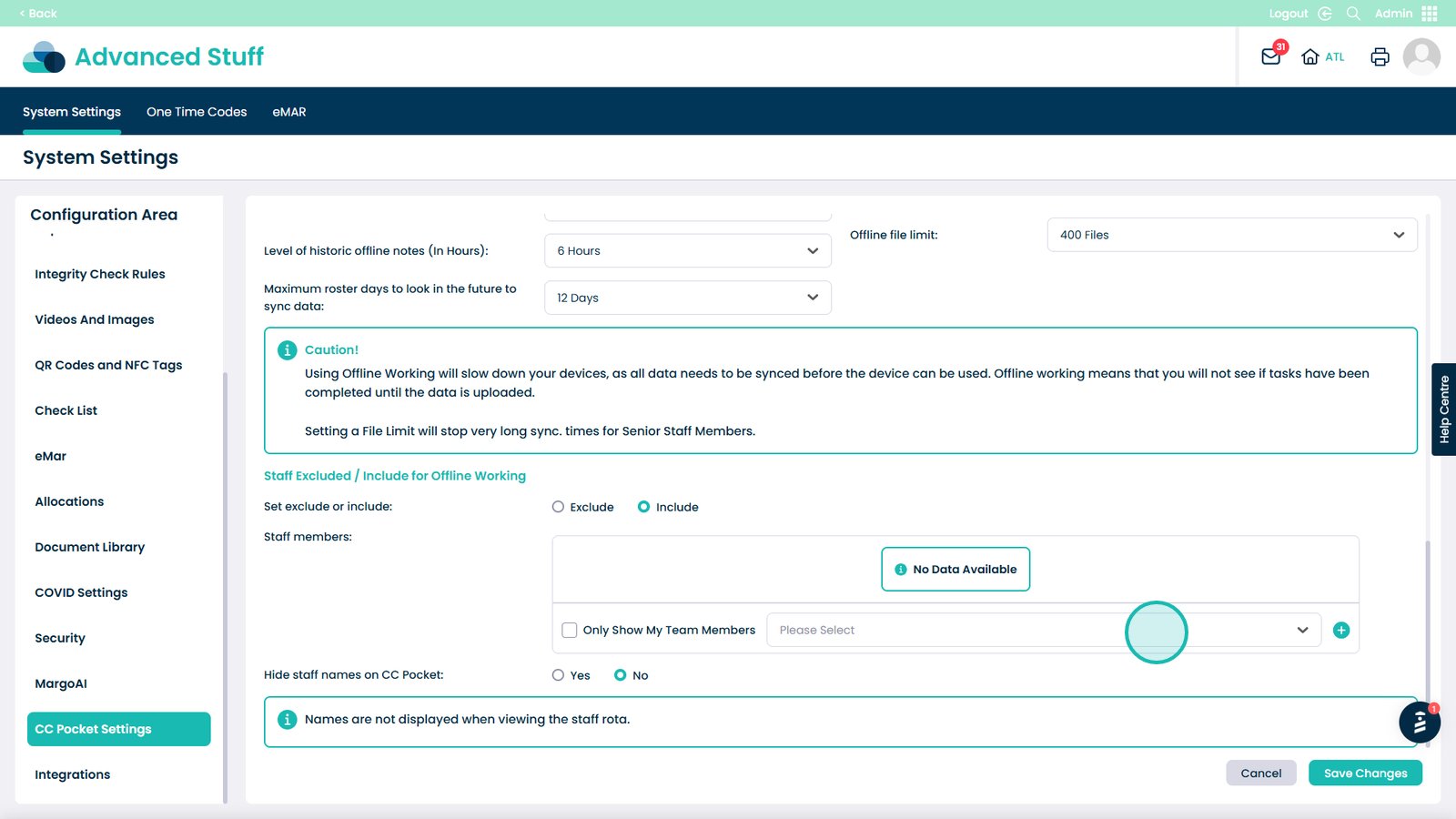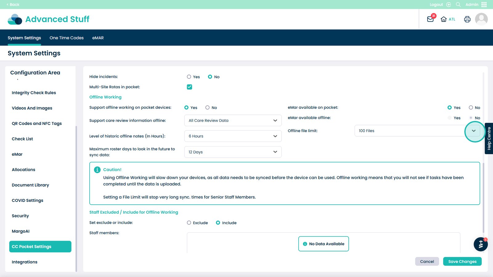 It also offers flexibility for managers, who can configure how much information is stored offline, such as the level of care review details, historic notes, and file limits. This balance between accessibility and control makes the feature both practical and secure, ensuring continuity of care while preventing unnecessary data storage.