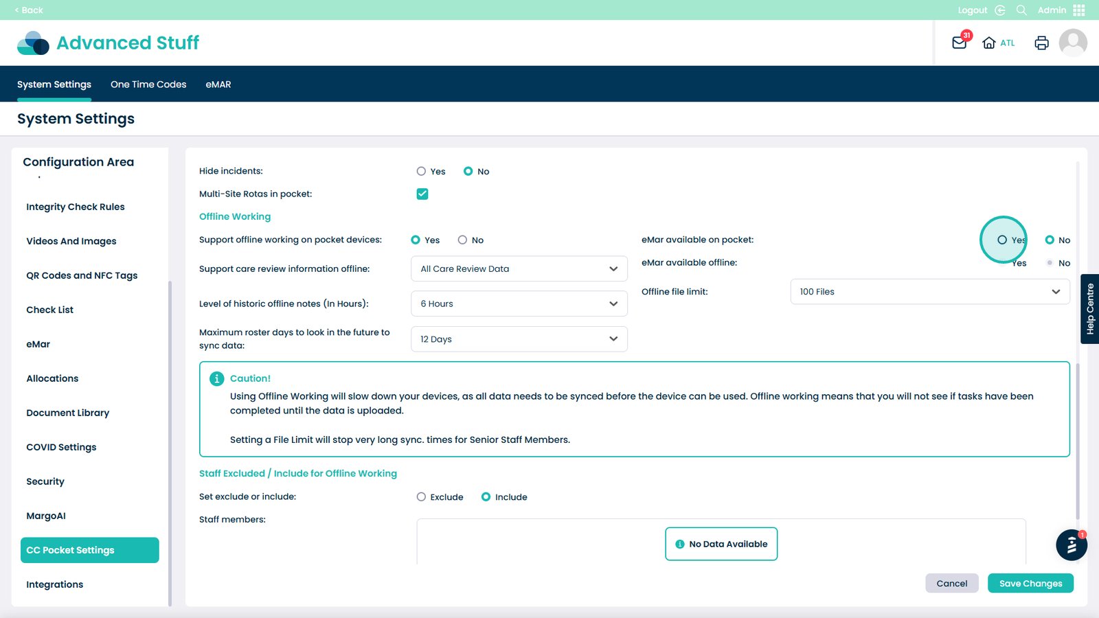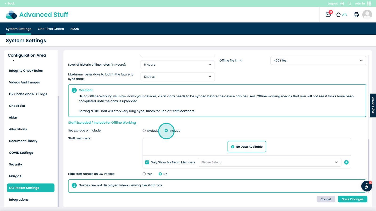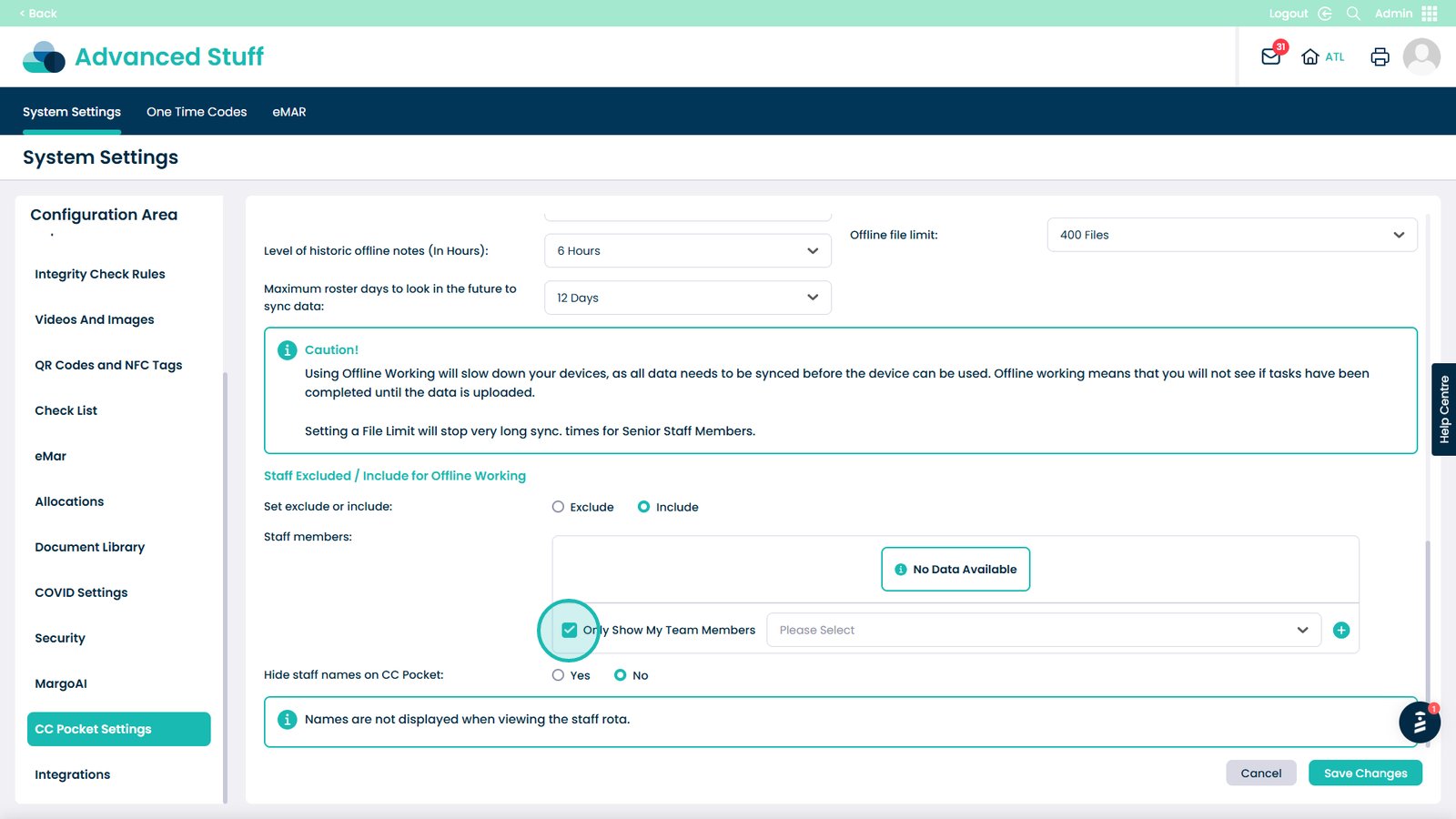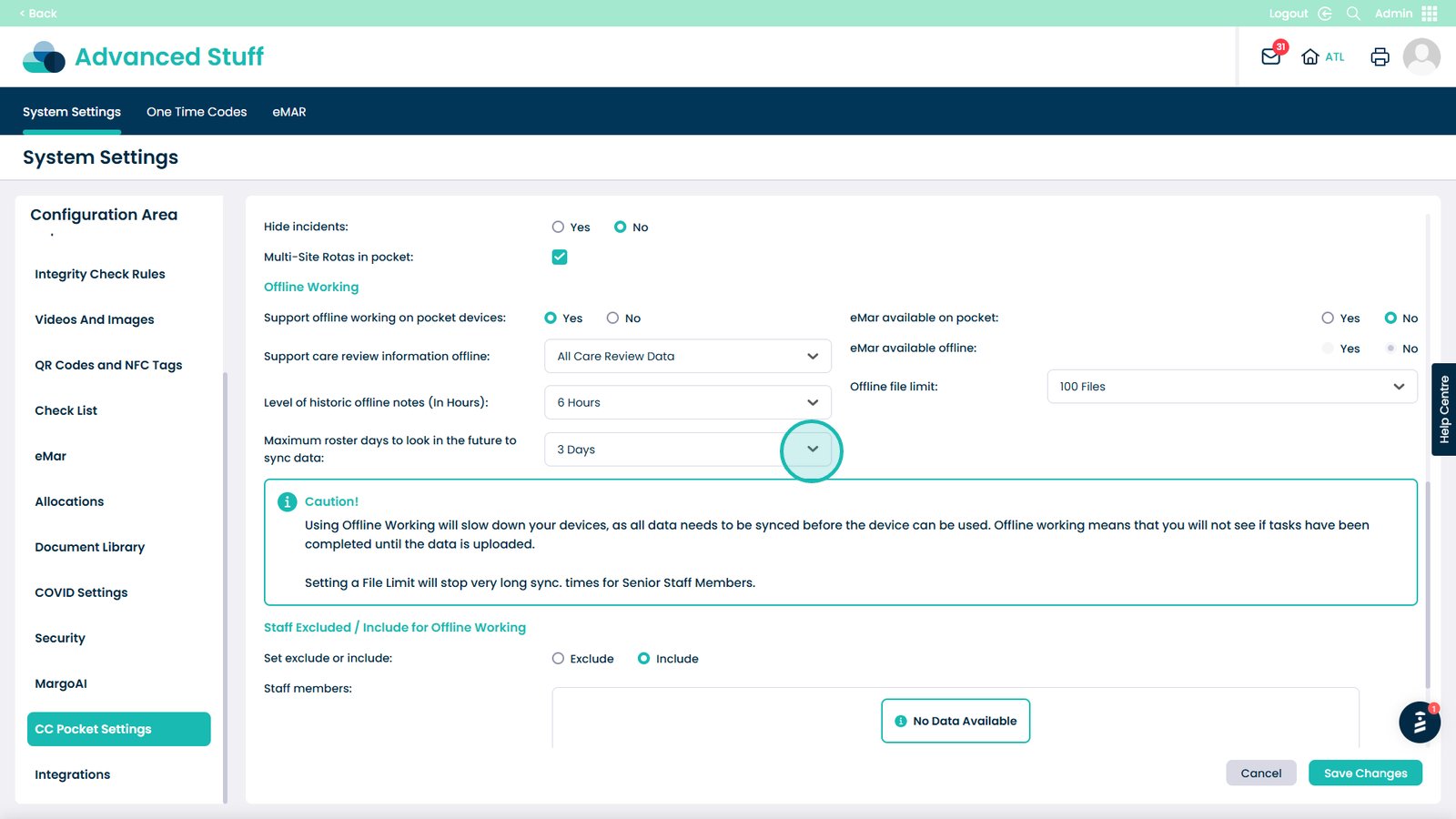 It also offers flexibility for managers, who can configure how much information is stored offline, such as the level of care review details, historic notes, and file limits. This balance between accessibility and control makes the feature both practical and secure, ensuring continuity of care while preventing unnecessary data storage.