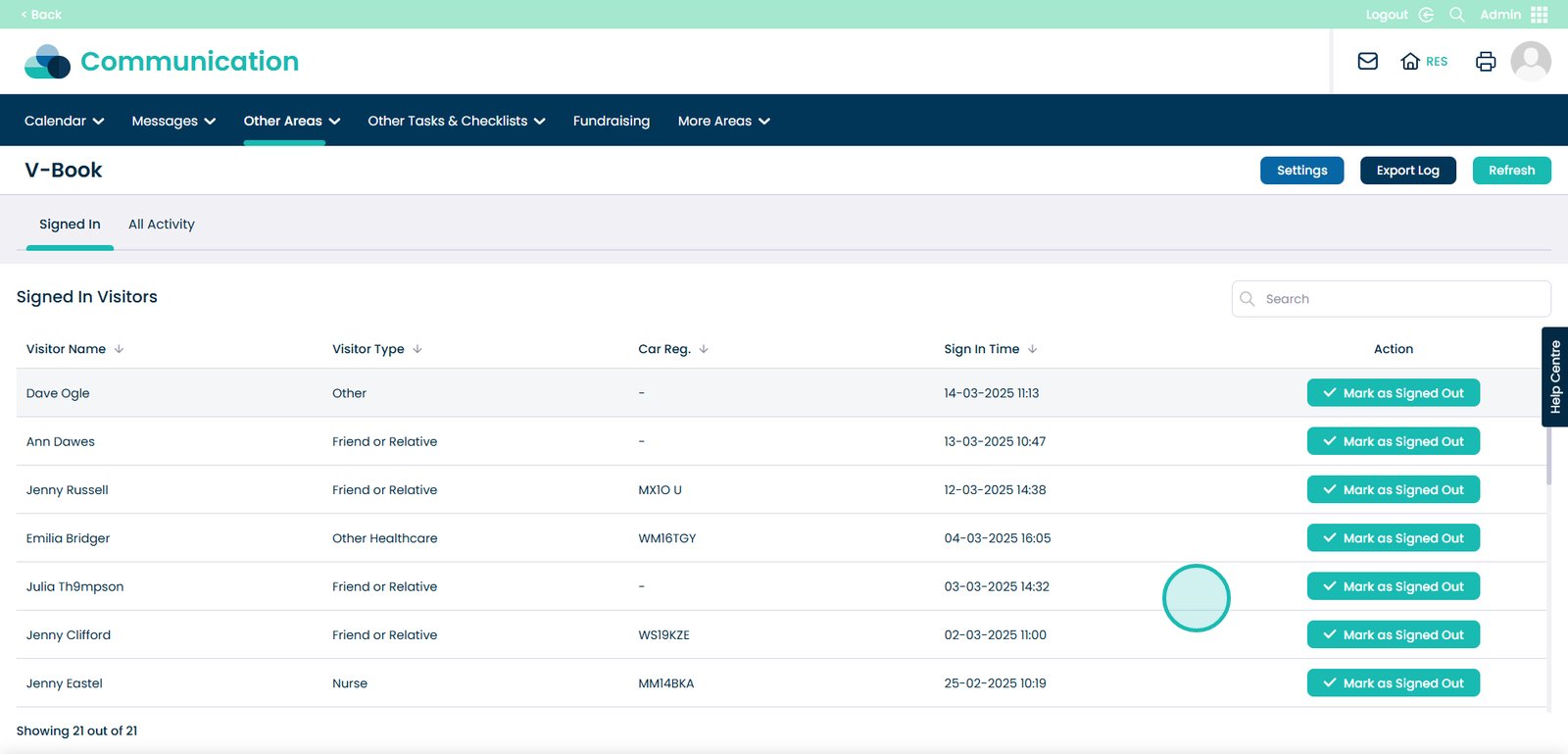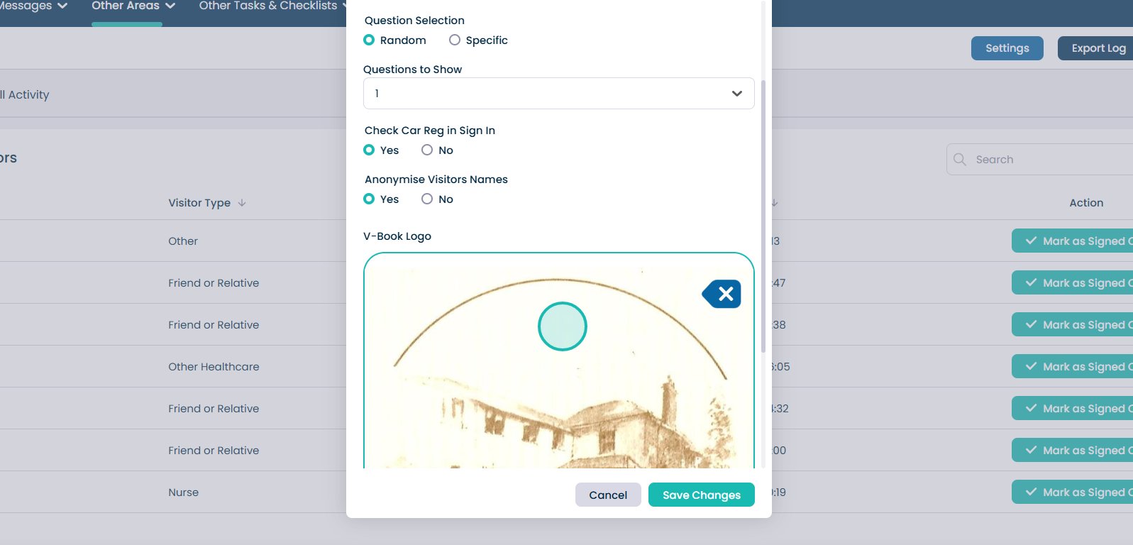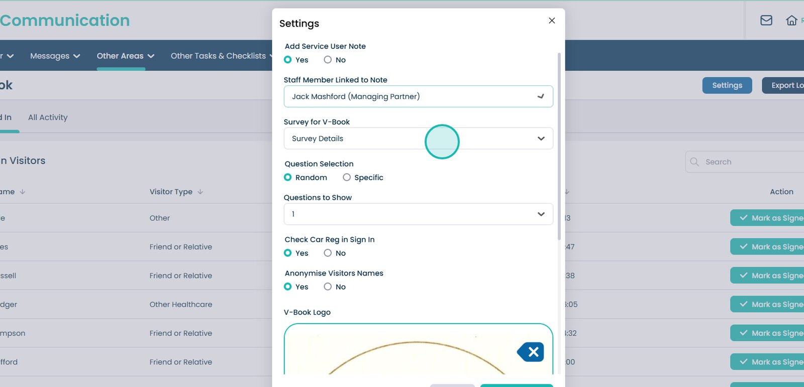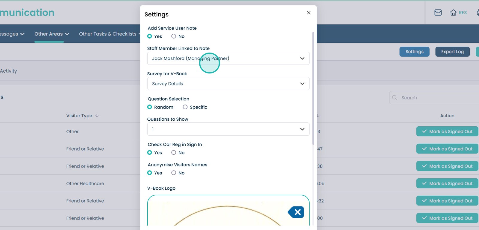 This guide will cover how to access the V-Book management tool on Care Control Cloud. See signed in visitors and manage associated V-Book settings.