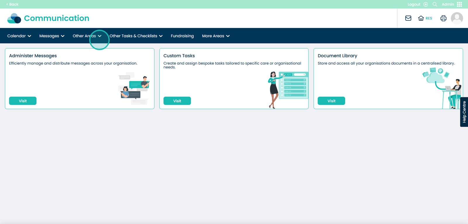 3. Within the communication area, there will be a tab called ‘Other Areas’, click the drop down arrow next to it.