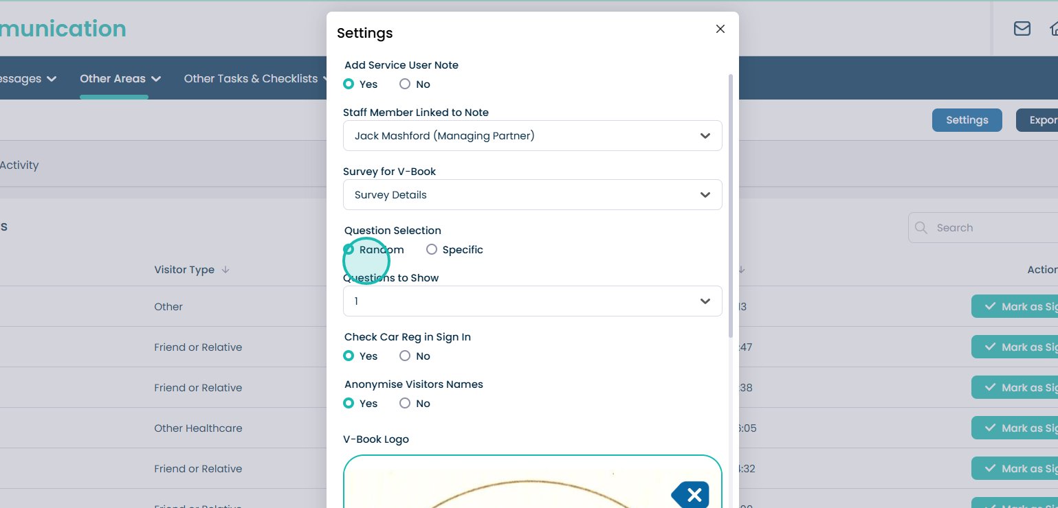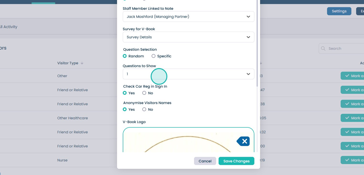The purpose of this guide is to understand how to tailor your V-Book settings. Whether you want to enable random question selection or anonymise visitor names, this guide will show you exactly how to do it. Please follow the interactive guide below, a written guide is also available at the bottom of the page.