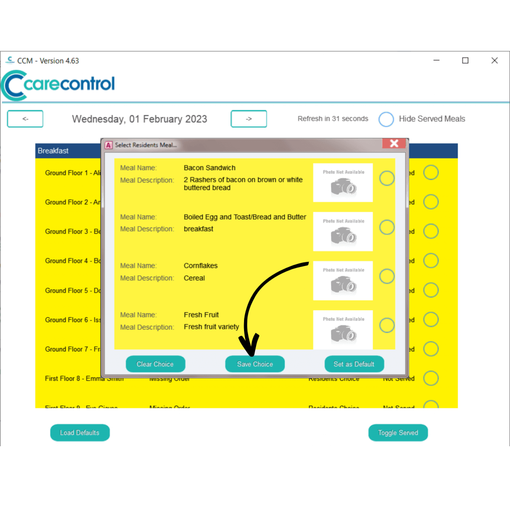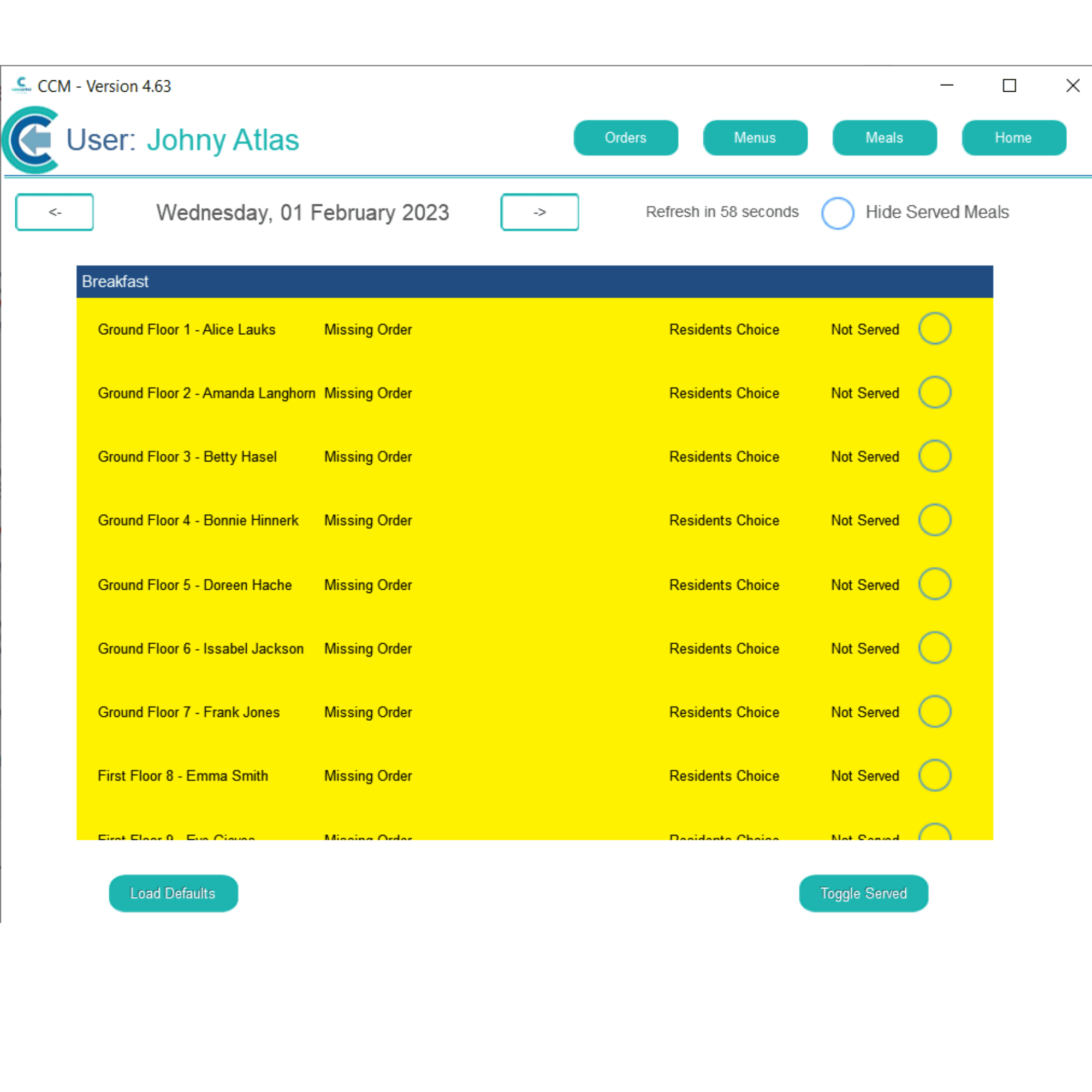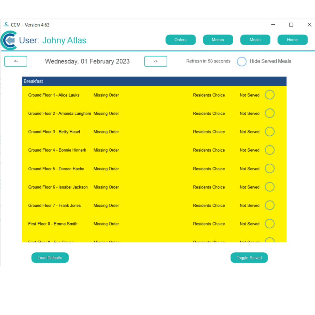This guide will cover how to view and serve kitchen orders on Care Control Mobile. This needs to be done after food orders have been taken, and before food intake is recorded.