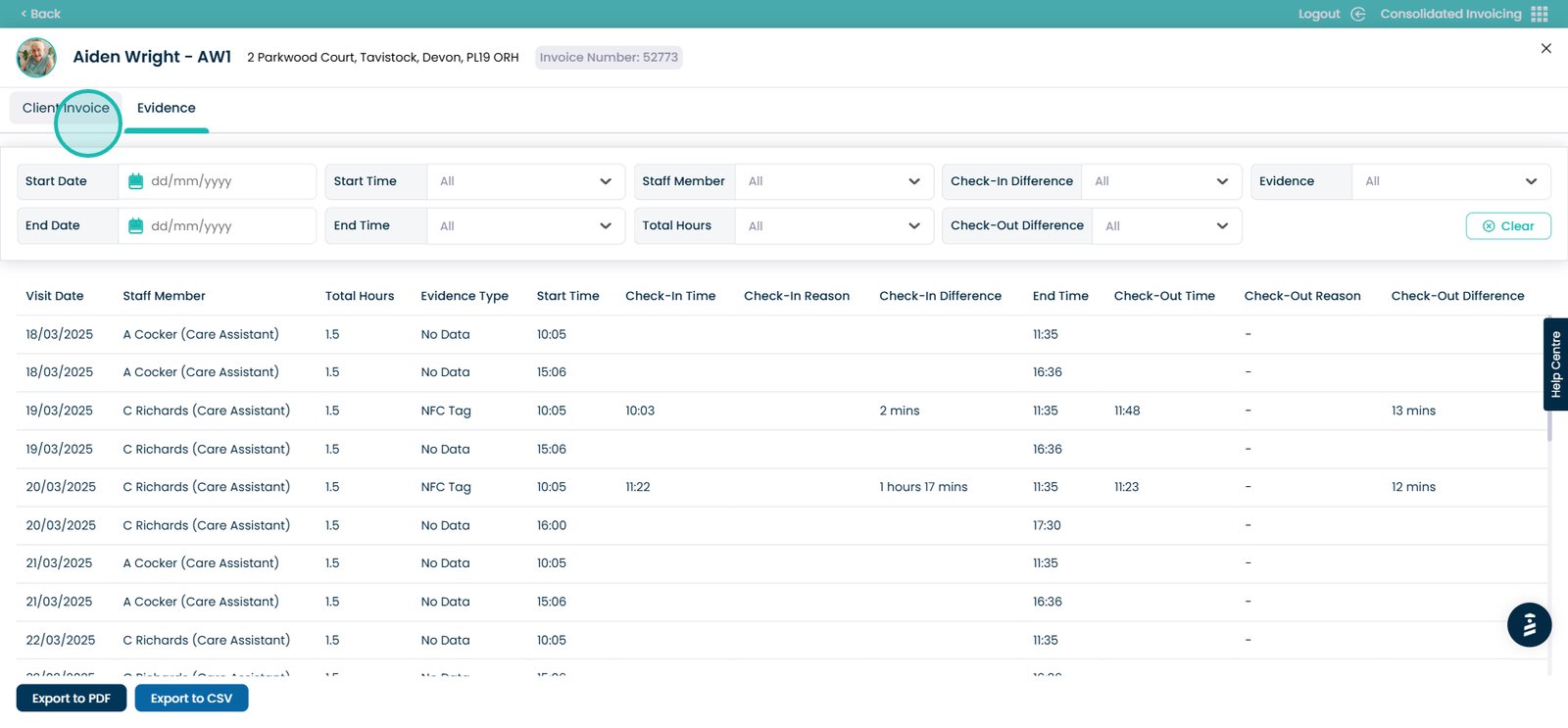 Understanding how to finalise an invoice in the Consolidated Invoicing App is essential for domiciliary care providers. Once an invoice is finalised, you can export detailed records — including visit evidence, the total invoice amount, staff check-in and check-out times, and total hours worked — in both PDF and CSV formats. This provides clear, accurate data that supports audits, simplifies reporting, and ensures your records are always inspection-ready.